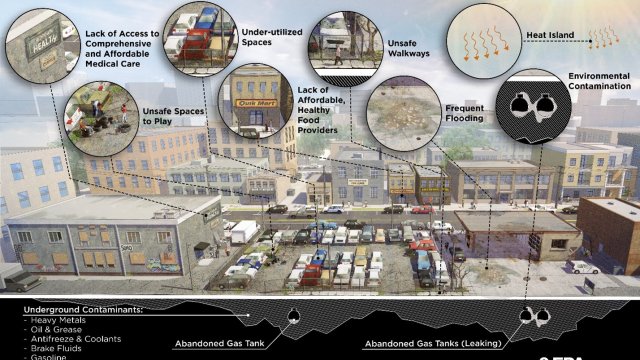 Increased frequency and intensity of flooding at potentially contaminated brownfields, like abandoned gas stations, can affect groundwater levels, equipment and move surface and subsurface contamination. Paved areas without spaces to safely manage contaminant movement or to direct stormwater can increase risks.