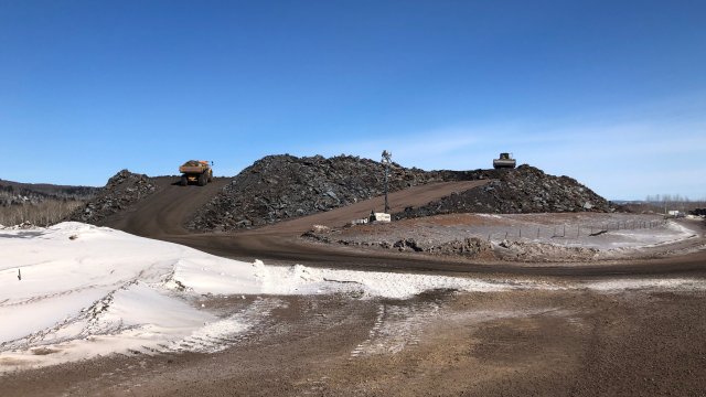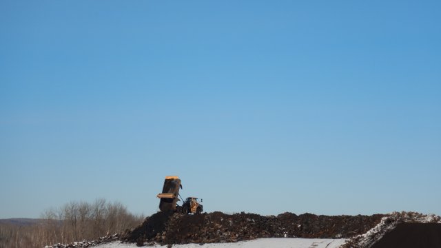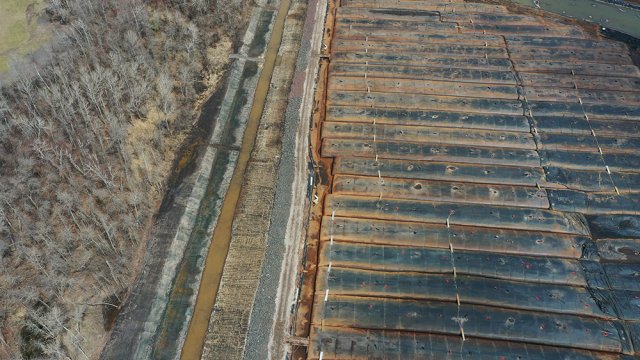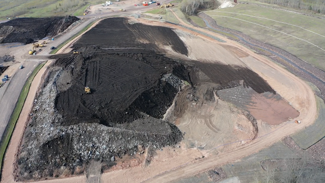 Stockpiled material from winter operations is placed in the OU-J Confined Disposal Facility (CDF).