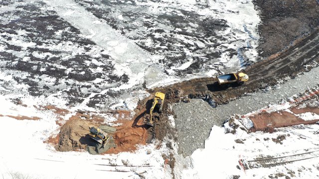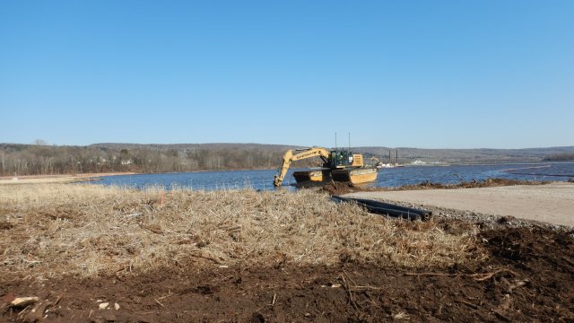 Grading continues in Wire Mill Pond to prepare for remedial cap placement.