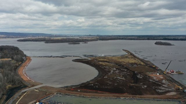 Stockpiling of clean sand material to use in capping and cover placement continues.