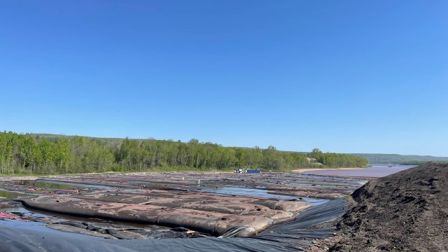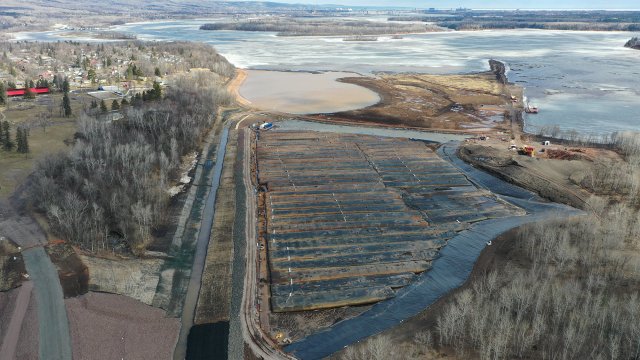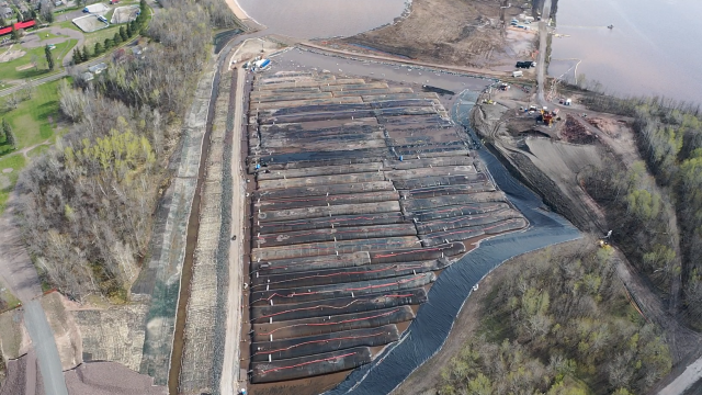 The Geotube bags in the Upland Confined Disposal Facility (CDF) are prepared to receive dredged material from the upcoming dredging operations in Spirit Lake.