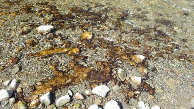 Microseira, Microcoleus, and Nostoc are primarily benthic (bottom living) cyanobacteria that can produce toxins in lakes, streams and rivers. Microseira forms greenish-black, dark blue or black woolly-looking mats on the bottom of streams and ponds which may float to the surface due to trapped gas, trailing filament “streamers” behind them. Microcoleus forms dark blue-green, red-brown, yellow-brown or brown films on bottom substrates including rocks, plants, and other algae and can also float to the surface. Nostoc, a common cyanobacteria in aquatic and terrestrial environments forms dark green or brown gelatinous bulbous or ear-shaped colonies on hard substrates in streams and rivers or in soft sediments among plants in the margins of lake and ponds.