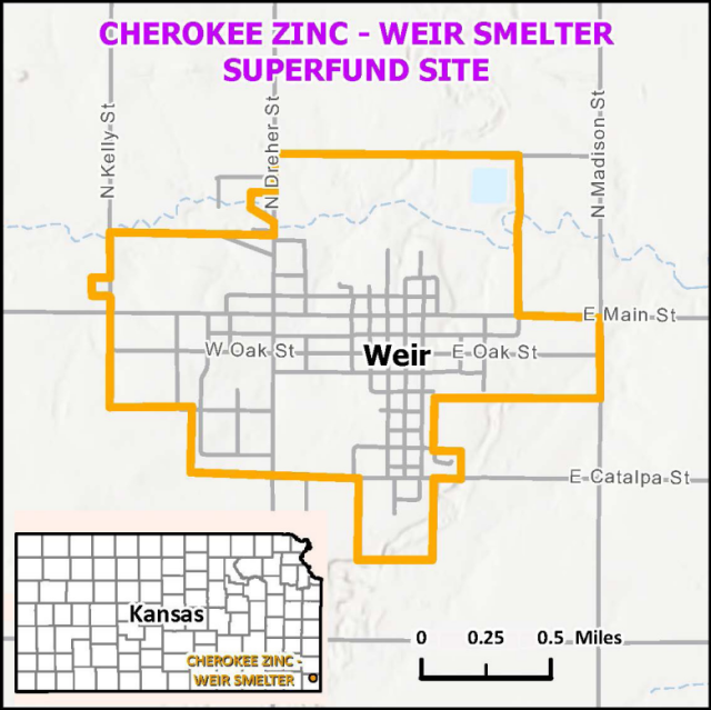 The Cherokee Zinc - Weir Smelter National Priorities List (NPL) Superfund Site is located in Weir, Cherokee County, Kansas. The site is a part of the Tri-State Mining District, where mining, milling, and smelting of lead and zinc ore occurred for more than 100 years. This site was added to the National Priorities List (NPL) in 2021. The NPL is a list of the nation’s hazardous waste sites with the highest priority for cleanup under the Comprehensive Environmental Response, Compensation, and Liability Act (CERCLA), commonly known as Superfund. EPA’s Remedial Investigation (RI) and Feasibility Study (FS) is currently underway to better understand the extent of the contamination at the site.