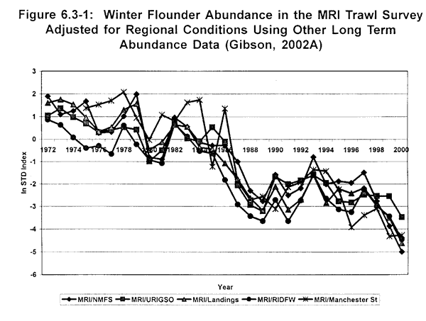 - Figure 6.3-1: Winter Flounder Abundance in the MRI Trawl Survey Adjusted for Regional Conditions Using Other Long Term Abundance Data