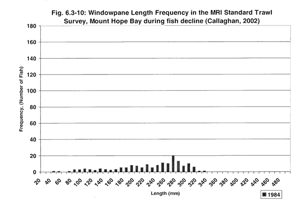 - Figure 6.3-10: Windowpane Length Frequency in the MRI Standard Trawl Survey, Mount Hope Bay during fish decline