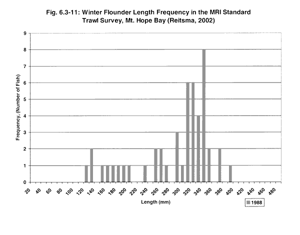 - Figure 6.3-11: Winter Flounder Length Frequency in the MRI Standard Trawl Survey, Mount Hope Bay
