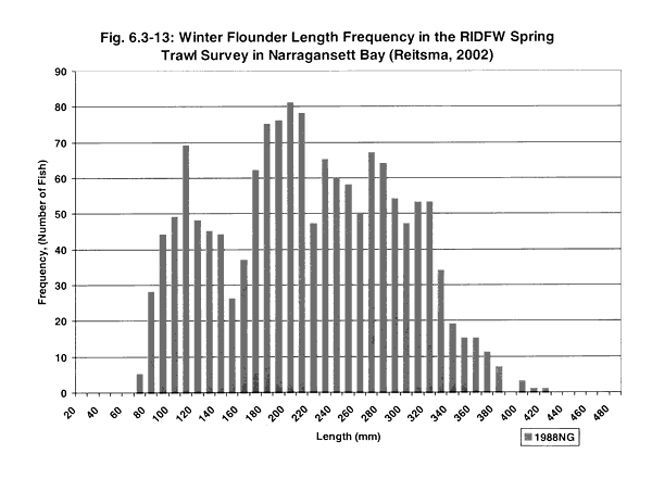 - Figure 6.3-13: Winter Flounder Length Frequency in the RIDFW Spring Trawl Survey in Narragansett Bay