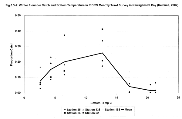 - Figure 6.3-2: Winter Flounder Catch and Bottom Temperature in RIDFW Monthly Trawl Survey in Narragansett Bay