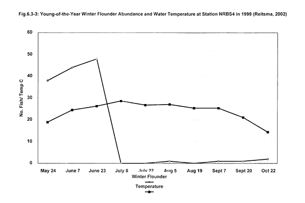 - Figure 6.3-3: Young-of-the-Year Winter Flounder Abundance and Water Temperature at Station NRBS4 in 1999