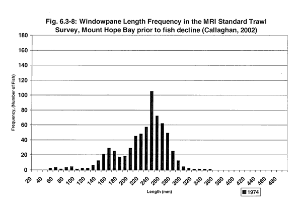 - Figure 6.3-8: Windowpane Length Frequency in the MRI Standard Trawl Survey, Mount Hope Bay prior to fish decline