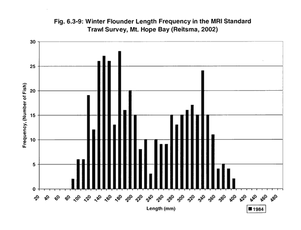 - Figure 6.3-9: Winter Flounder Length Frequency in the MRI Standard Trawl Survey, Mount Hope Bay