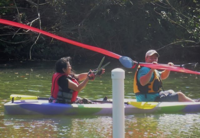 One woman at the ceremony volunteered to cut the ribbon, which had been strung across the entire width of the creek. Giant scissors in hand, she went from her wheelchair and into a tandem kayak with the president of the Northwest Indiana Paddling Association (NWIPA). After the ceremonial snip, she reflected that getting in a kayak was something she’d never even dreamed of doing, but that day she thought “yes! I can do that.”